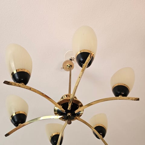 En elegant retro taklampa/takkrona med fem armar från 1960-talet.