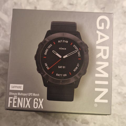 Laddare, originalkartong samt ett extra original gummiband från Garmin medföljer. Detta är en väldigt pålitlig och kraftfull multisportklocka med solcellsladdning, lång batteritid och mängder av träningsfunktioner.