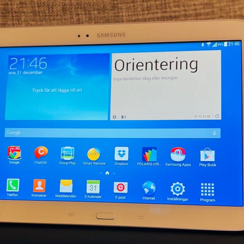 Säljer nu vår pålitliga Samsung Galaxy Tab A 10.1 (modell SM-T585). Det här är versionen med SIM-kortsplats, vilket innebär att du kan surfa var du än är via 4G/LTE – perfekt för bilresan, båten eller sommarstugan där wifi saknas.