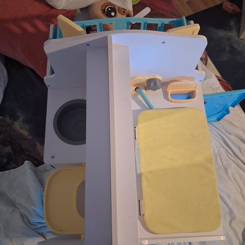 Lådorna undertill från produktbilder finns inte med. Kan användas som barnmöbel med flera funktioner i hemmet.