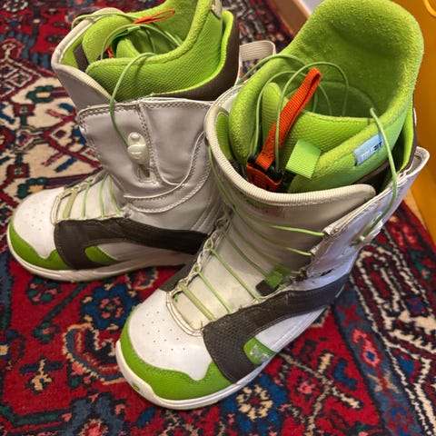 Eventuellt byte till mindre storlek är intressant. Märke spelar mindre roll, t. ex. Burton Mini Grom, S eller liknande. Går bra att byta till begagnade men i bra skick.