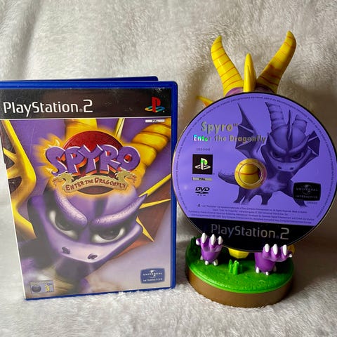 Spyro Enter the Dragonfly Playstation 2 spel. Inkluderar originalfodral och spelskiva. Spelet är en del av Playstation 2-plattformen och är klassificerat för åldrar 3 år och uppåt.