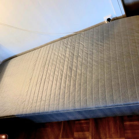 2 st kompletta och nästintill oanvända sängar med ben och sängmadrass i grått tyg. Inklusive bäddmadrass i utmärkt skick. Madrassen är insvept i plast för skydd och enkel lastning. Pris 500:-/st. Hämtas på plats.