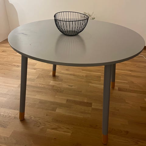 Arbetsbord/konferensbord ritat av Eva Lilja Löwenhielm för IKEA. Rum för fyra arbetsplatser. Kabelbox med lock i mitten