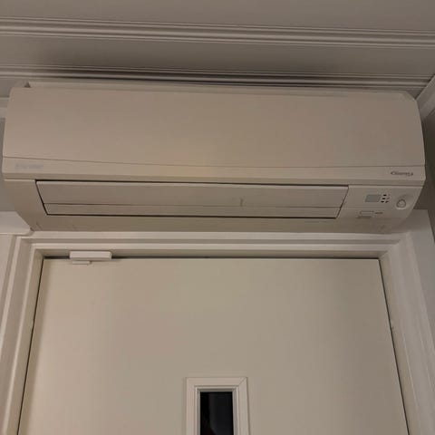 Toshiba Daiseikai luftvärmepump med kylmedel R410A. Enheten har effekt på 3,5 kW för kylning och 4,27 kW för värmning. Strömförsörjning 220-240V, 50Hz. Max strömförbrukning 11,5 A vid kylning och 13,5 A vid värmning. Kapacitet upp till 3500 W. Temperaturintervall för drift 10°C till 21,1°C.