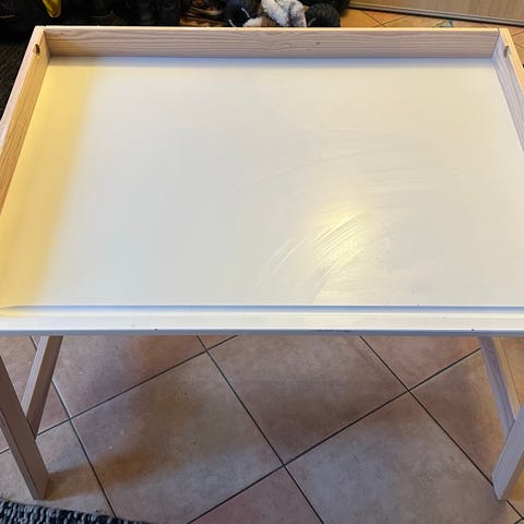 Säljet ett IKEA barnbord FLISAT i trä som barnen vuxit ur. Måtten är 83x58 cm och höjden 48 cm. Bordet är välanvänt men helt och snyggt. Den ena skivan har några mindre märken och det sitter klistermärken gömda på skivorna undersida. 2 förvaringslådor ingår.