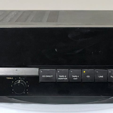 Förstärkare NAD 302 med 2x25 watt. Lite slitet yttre men låter väldigt bra. Pre-Out på baksidan.
