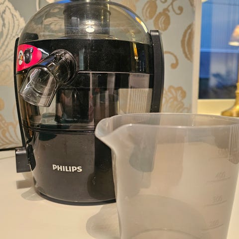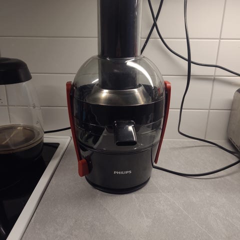 Säljer en kraftfull Philips Råsaftcentrifug i mycket gott skick. Detta är en effektiv maskin som kan pressa upp till 2 liter juice åt gången utan att du behöver tömma fruktköttsbehållaren. Tack vare det extra stora matningsröret (75 mm) behöver du inte skära upp de flesta frukter och grönsaker i förväg.