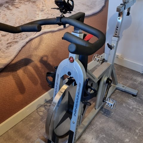 Fitnord racer 200 spinningcykel i svart färg. Träningscykel avsedd för inomhusbruk med justerbart sadel- och styrläge för anpassning efter användarens behov.