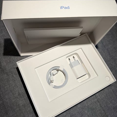Apple iPad 10.9 tum med 64 GB lagringsutrymme och Wi-Fi-anslutning. Färgen är blå. En surfplatta med pekskärm som kan användas för olika digitala ändamål såsom surfning, läsning, och multimedia.