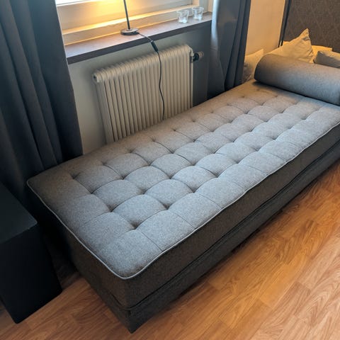 Dagbädd enligt bifogade mått. Två madrasser ingår varav en nyinköpt.