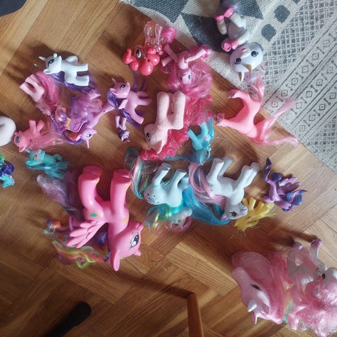 Tre gosedjur, två Men to you Miranda björnar och en enhörning i nyskick.