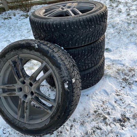 Kompletta vinterhjul med odubbade däck. Fälgarna är i toppskick utan repor eller skavmärken