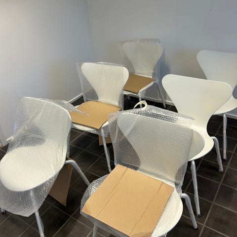Stolarna är oanvända efter renoveringen och säljs med kvitto från www.embassyofdesign.se.
