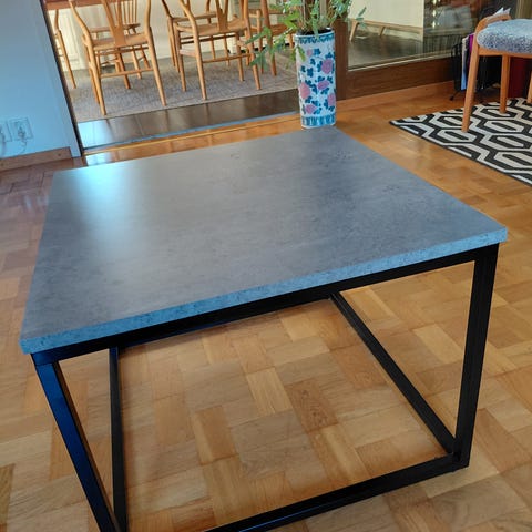 IKEA soffbord i svart färg. Bordet har en enkel och funktionell design, lämpligt för vardagsrumsmiljö. Tillverkat av trämaterial med en rektangulär form och stabil konstruktion.