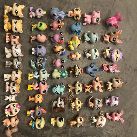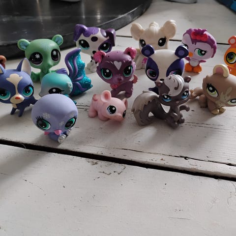 Littlest Pet Shop lekset inklusive flera små figurer av olika djur samt tillbehör som lekplatser, rutschbana och små hus.