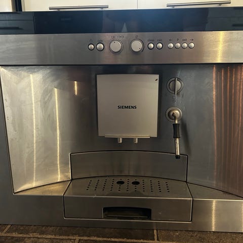 Bosch Inbyggd espressomaskin i rostfritt stål med digital display och mjölkskummare. Maskinen är designad för inbyggnad i köksskåp och har användarvänliga reglage för att tillaga espresso och andra kaffedrycker.