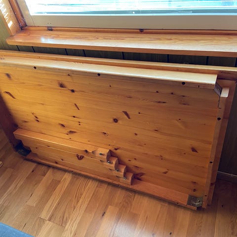 Rejält bord av furu. 140x80 cm. Finns även ben så det går att göra till ett soffbord.