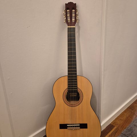 Gitarr för de yngre. Här var musikintresset svalt så den är nästintill oanvänd. Inga synliga skador.