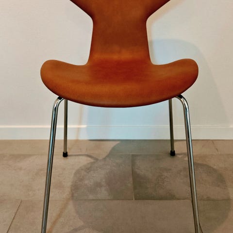 PK33 formgiven av Poul Kjaerholm, producerad av Fritz Hansen, nyskick. Svart läder Grace.