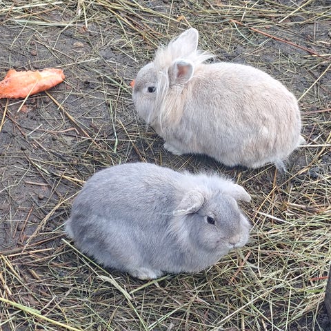 Två renrasiga lejonhuvade dvärgkaniner (hanar) söker nytt hem.