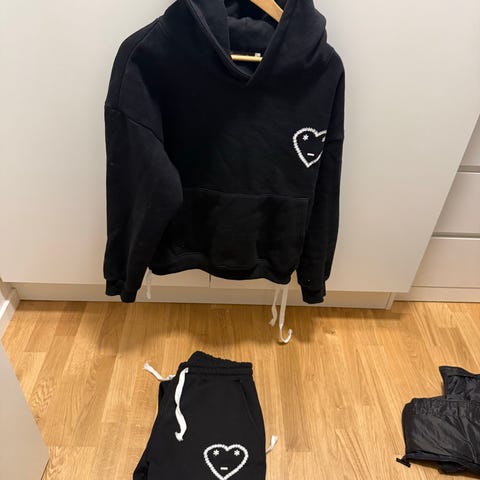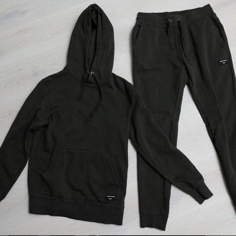 Björn Borg träningsset i storlek M för män, svart färg och tillverkat i akrylmaterial. Setet består av en hoodie och byxor med mönsterdetaljer.