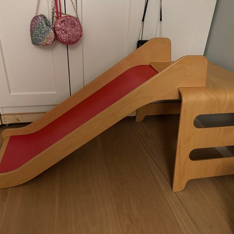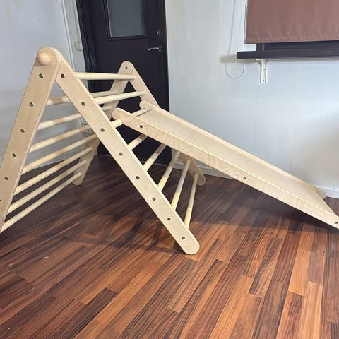 Den största fördelen är dess positiva inverkan på barnets utveckling. Barnen får möjlighet att utveckla sin motorik, balans och självförtroende. Tillverkad av högkvalitativa och hållbara material - garanterar säkerhet och långvarig användning. Den är lätt att flytta och anpassa till olika rum, vilket gör den idealisk för lek inomhus. Lämpligt ålder: 12+ månader. Material (mer information här): Sidor & Ramp: Baltisk björkträ 1.2-1.8 cm tjock, Runda stänger: Aspträ.