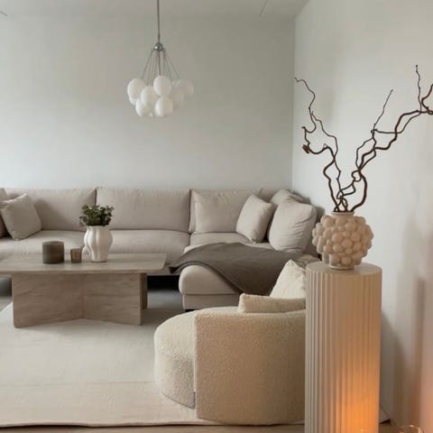 Soffan är cirka ett år gammal och i mycket gott skick, som ny, utan fläckar eller skador. Den är otroligt bekväm med sitt djupa säte och passar perfekt både för vardagsrum, filmkvällar och när man vill ha gott om plats för gäster. Den krämvita tyget ger ett stilrent och lyxigt intryck och är lätt att matcha med olika inredningsstilar.