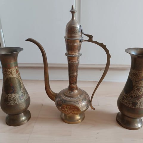 vintage brass pin tray, Indian paisley leaf shaped dish