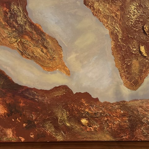 Konstverk med guldfärgade blad på svart bakgrund med siz 100 och 70