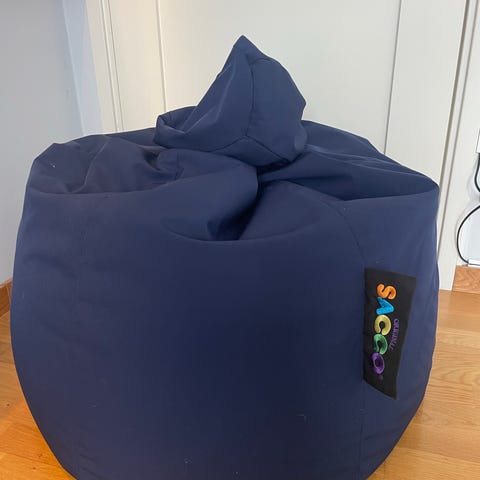 Sittpuff från märket Pazzo, sparsamt använd men med några fläckar på tyget från användande som bör gå bort med rengöring, dock inga revor eller skador.