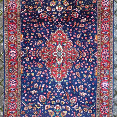 Vacker handknuten persiskt matta. Mattan är tillverkad med traditionellt mönster och passar som golvbeläggning i olika rum. Mattan finns till avhämtning i centrala Stockholm.