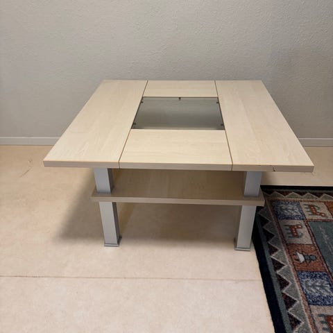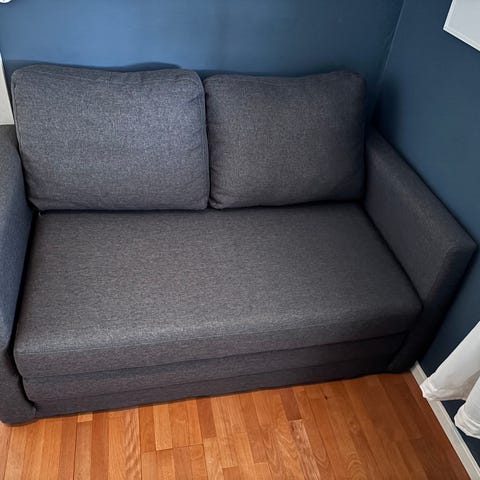 Bäddsoffa och bord från IKEA.