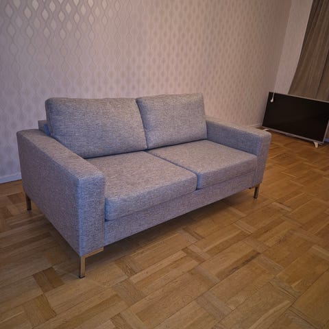 Ljusgrå väldigt sköna soffor i ok skick. finns spår av katt men inget man tänker på i sin helhet. Klädsel tvättbar i 40°