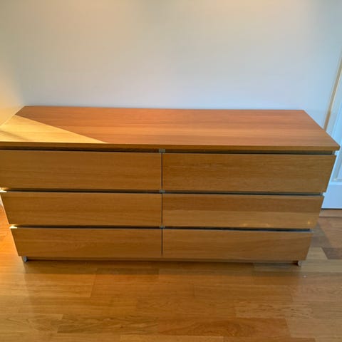 Baby Dan med skötbord, vitmålad med träskiva. Byrån har tre lådor och en skötbordsavdelning med kanter. Möbeln är lämplig för förvaring och som skötbord i barnrum eller andra utrymmen.