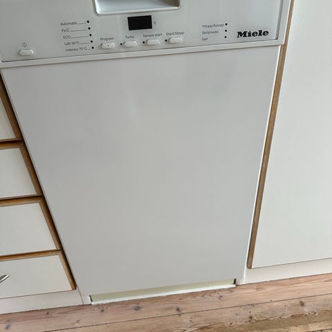 Locket för diskmedel går inte att stänga. I övrigt fungerar diskmaskinen bra.