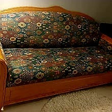 Fin framåtbäddad bäddsoffa som enkelt dras ut till en dubbelsäng på ca 150 cm.