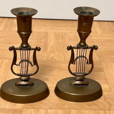 Två mycket fina lampetter i mässing för ljus. Är i väldigt fint skick och finns ett K inristat på baksidan.
