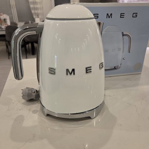 Smeg vattenkokare i röd färg. Fick dubbla i julklapp. Rostfritt stål. Rymmer 0,8 liter. Aldrig uppackad.