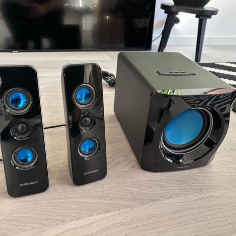 Högtalare och bas följer med + skärmen. (Ingen mus eller tangent bord)