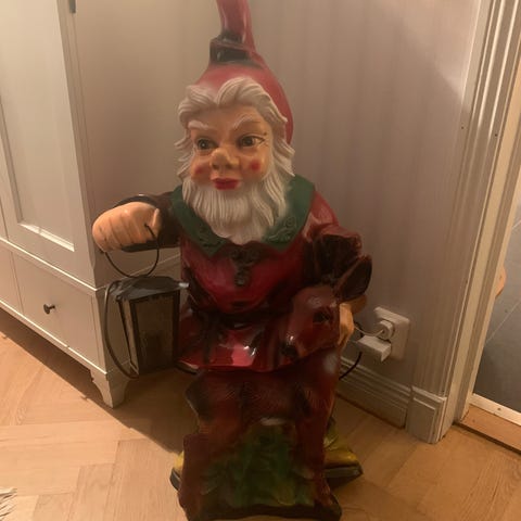 Har en tomtelampa som vill stå ute i trädgården eller i farstun! Han har aldrig blivit använd så är helt ny till ditt förfogande!
