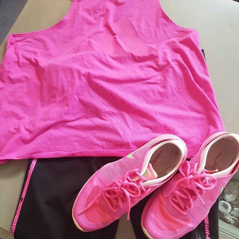 Träning sportset för dam i storlek M, brunt färg. Setet består av sport-bh och byxor, lämpligt för olika träningsaktiviteter.