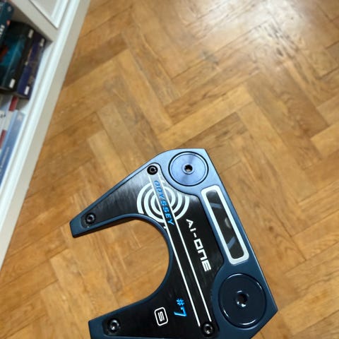 Odyssey red seven i nyskick, det är en sparsamt använd putter. Den har fått en uppgradering i form av ett nytt grepp (super stroke pistol lock 2.0).