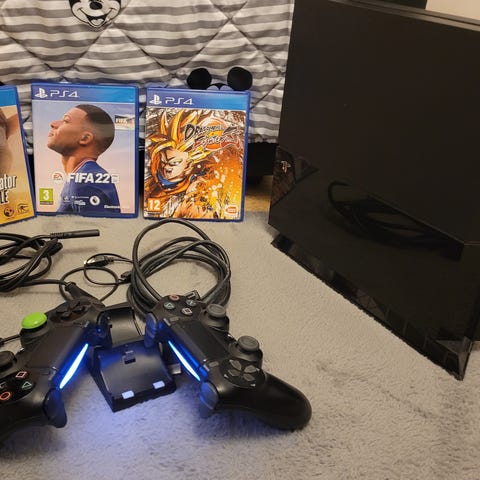 Playstation 4 spelkonsol med handkontroll och 2 spel. Allt fungerar som det ska!