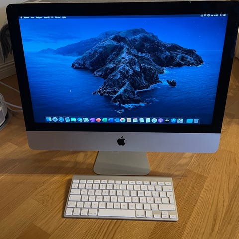 Apple iMac stationär dator med macOS High Sierra. Utrustad med Intel Core i3-processor på 3,33 GHz, 4 GB RAM och AMD Radeon HD 6750M grafik med 512 MB minne. Inkluderar trådlöst tangentbord och mus.