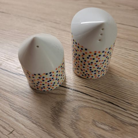 Säljer ett fint set salt och pepparströare i form av två ugglor i vit glaserad keramik. Dekorativa men fullt fungerande. I gott skick utan sprickor eller nagg.