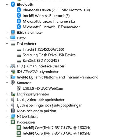 * Intel Core Intel Core i5 4310U @ 2.0 GHz med turbo 3.0GHz