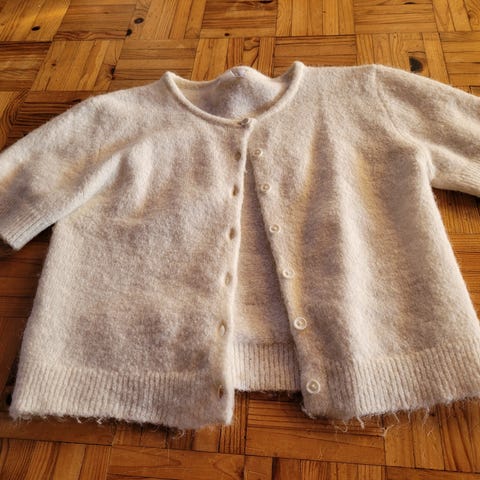 Jättefin ljusrosa kofta med pärlknappar. 14% ull så varm och skön. Mycket fint skick/nyskick!