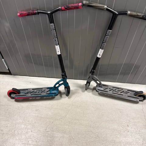 Handtagen är lite slitna men går säkert att byta ut eller om man lindar om dem med lindor som man kan använda till tennis racket Kickboarden/Sparkcykeln är hopfällbar