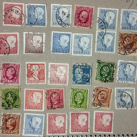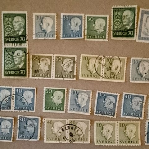 18 frimärke. Vissa har fullt synligt ortsnamn. Säljes som en enhet.